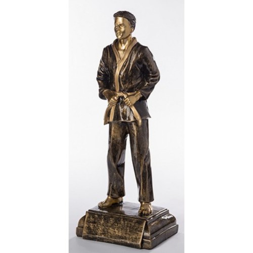 Pronksine judomaadleja auhind on 40,5 cm kõrge. Tekstiga metallplaat auhinnajalal sisaldub hinnas (logo, foto, tekst...).Hind koos käibemaksuga.