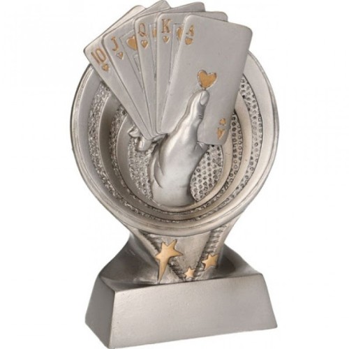 Hõbedane kaardimängu auhind on 15 cm kõrge. Tekstiga, logoga, fotoga... metallplaat (65 x 20 mm) auhinnajalal sisaldub hinnas.