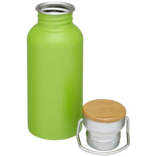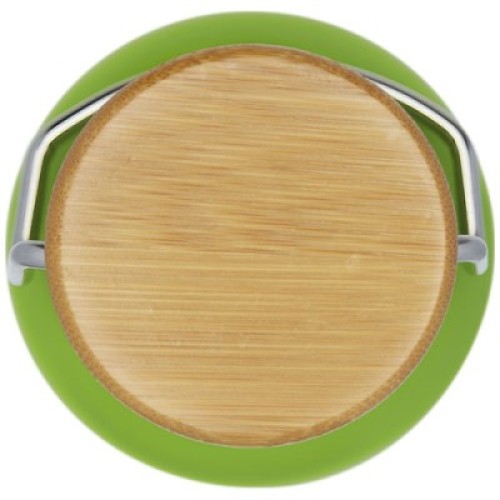 Ühekordse seinaga roostevabast terasest roheline pudel keeratava korgiga. Kork on pealt kaetud puiduga, samuti käepide kergeks kaasaskandmiseks.
