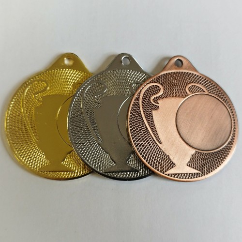 Kuldne, hõbedane ja pronksine universaalne karikaga medal on 50 mm läbimõõduga. Medali paksus 2 mm.