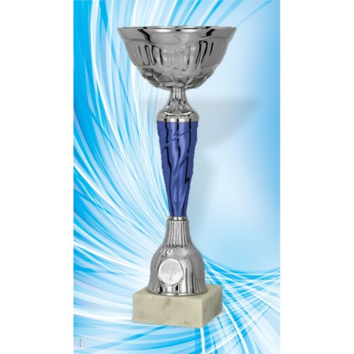 Eriti uhke sinise jalaga hõbedane karikas! Karikajala hõbedasele osale lisatakse 25 mm läbimõõduga spordiala zetoon!