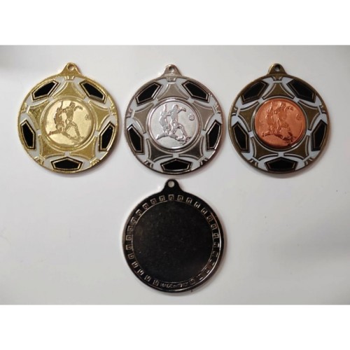 Glasuuritud jalgpalli medalid I, II ja III kohale. Medali paksus 2 mm.  Vali lisaks medali pael! Medali hind sisaldab žetooni ning tagumise poole trüki (logo, kujundus, foto ja tekstid). Medali hind on koos km-ga. Medal saadval komplektina (kuld / hõbe / pronks).