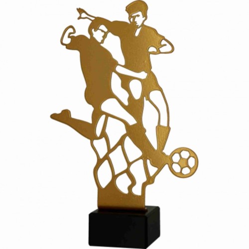 Kuldne metallist (paksus 2 mm) ja graniidist jalgpalli auhind on 22 cm kõrge. Tekstiga metallplaat auhinnajalal sisaldub hinnas (logo, foto, tekst...).Hind koos käibemaksuga.