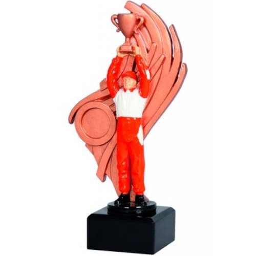 Pronksine rallisõitja figuuriga auhind on 20,5 cm kõrge. Ümmargune žetoon ja tekstiga metallplaat auhinnajalal sisaldub hinnas (logo, foto, tekst...).Hind koos käibemaksuga.